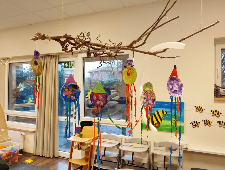 Schon vorher bastelten die Kinder fleißig bunte Clowns als Dekoration. Der Clown und Ballonkünstler, der die Kita besuchte, hatte zudem viele schöne Luftballontiere und leckere Zuckerwatte dabei. Für die Kleinen ein ganz besonderer Tag mit viel Freude.
