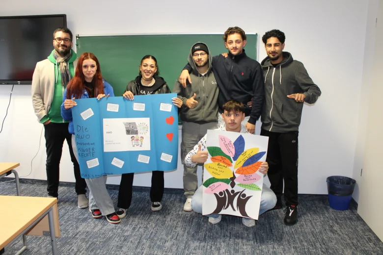 Anlässlich des Weltkindertages gestalteten die Schüler*innen der Beruflichen Integration des AWO Kreisverbandes Wesel mehrere Plakate zum Thema „Kinderrechte“. „Es hat großen Spaß gemacht“, sagt Dzenan (18). „Wir haben dabei vieles über die Rechte gelernt, was wir vorher nicht wussten. Es war sehr interessant.“